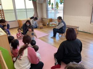0.1歳児は東住吉区の図書館の方に絵本を読んでもらいました。