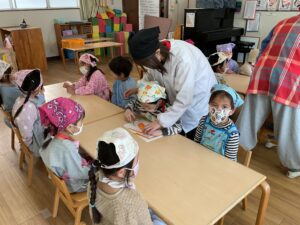 収穫祭をしました。今年は残念ながら収穫できるものがありませんでしたが各年齢ごとに