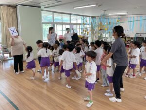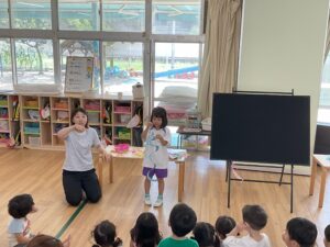 七夕の集い 保育園の様子 2025-08-14 7/7は七夕の集いがありました。笹に飾る飾りを各クラス作りみんなの前で紹介しました。七夕に関する〇✕クイズやパネルシアターでのお話で楽しみました。次の日は笹送り。みんなの願い事がかないますように・・・