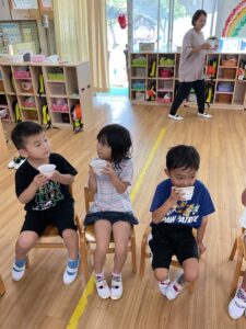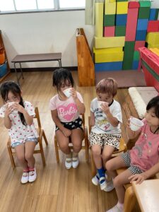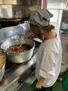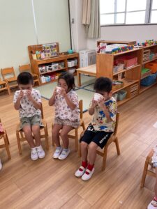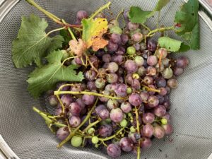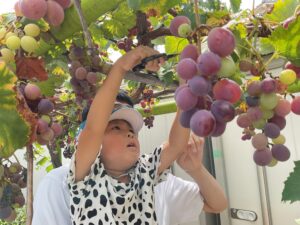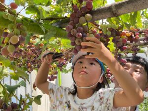 園庭のぶどうを収穫しました 保育園の様子 2025-09-05 ほし組(5歳児)が園庭のぶどうを収穫しました🍇 調理室の先生がぶどうジュースを作ってくれました🧑🍳100%のぶどうジュースの完成です。 「甘くておいしい♪」「おかわりしたい!」等。大好評でした😊