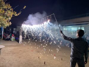 フランクフルトやポテトを食べたり、〇✕ゲーム、最後は花火と大盛り上がりでした。