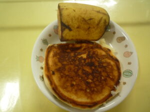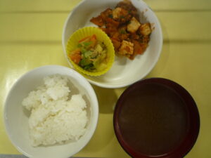 (給食) ・ごはん ・マーボー豆腐 ・中華風ツナサラダ ・もやしと玉ねぎの中華スープ (おやつ) ・ホットケーキ ・バナナ ・牛乳