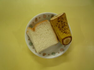 5月22日の給食 給食 2025-05-22 (給食) ・ごはん ・チーズオムレツ ・トマト ・カレー人参 ・春野菜のポトフ (おやつ) ・さくらんぼジャムパン ・バナナ ・牛乳 ※いちごジャムパンをさくらんぼジャムパンに変更しました