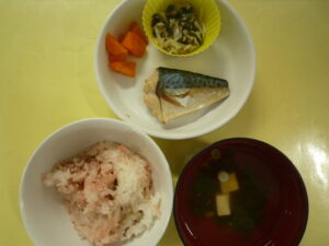 (給食) ・ごはん ・さばのみそ煮 ・もやしとわかめの酢の物 ・カレー人参 ・豆腐とねぎのすまし汁 (おやつ) ・ホットケーキ ・オレンジ ・牛乳
