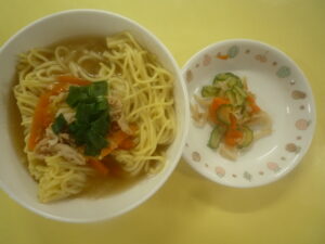(給食) ・醤油ラーメン ・人参ともやしときゅうりのナムル (おやつ) ・ヨーグルト ・バナナ ・牛乳