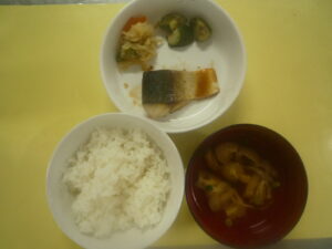8月7日の給食 給食 2025-08-07 (給食) ・ごはん ・さばのカレー焼き ・切り干し大根の炒め煮 ・きゅうりのゆかり和え ・揚げとねぎのすまし汁 (おやつ) ・あんずジャムパン ・オレンジ ・牛乳