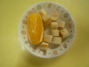 (おやつ)・おふラスク ・オレンジ ・牛乳
