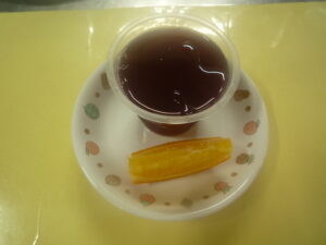 (おやつ)・ぶどうゼリー ・オレンジ ・牛乳