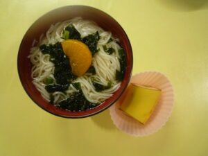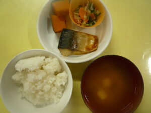 (給食) ・ごはん ・さばのカレー焼き ・かぼちゃ煮付け ・ほうれん草のおかか和え ・ねぎと豆腐のみそ汁 (おやつ) ・冷やしそうめん ・バナナ ・お茶