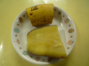 12月15日の給食 給食 2025-12-15 (給食) ・ごはん ・鮭のちゃんちゃん焼き ・高野豆腐の煮物 ・ブロッコリーのごま和え ・ほうれん草と大根のすまし汁 (おやつ)・蒸かし芋 ・バナナ ・牛乳
