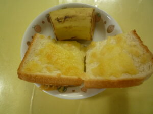 (給食) ・みそラーメン ・カリフラワーサラダ (おやつ)・チーズトースト ・バナナ ・牛乳