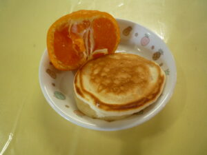 (給食) ・収穫祭カレー ・チーズサラダ (おやつ) ・ホットケーキ ・みかん ・牛乳