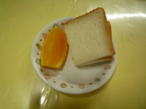 (給食) ・ごはん ・ポークケチャップ ・ブロッコリーソテー ・カリフラワーと人参のスープ (おやつ) ・いちごジャムパン ・オレンジ ・牛乳