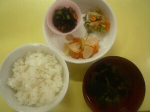 給食 2025-08-08 8月8日の給食 (給食) ・ハヤシライス ・キャベツと大葉のサラダ (おやつ) ・牛乳みかん寒天 ・バナナ ・牛乳 続きを読むarrow_right 給食 2025-08-07 8月7日の給食 (給食) ・ごはん ・さばのカレー焼き ・切り干し大根の炒め煮 ・きゅうりのゆかり和え ・揚げとねぎのすまし汁 (お 続きを読むarrow_right 給食 2025-08-06 8月6日の給食 (給食) ・彩ごはん(青菜と鮭) ・肉じゃが ・トマト ・キャベツと人参のみそ汁 (おやつ) ・ヨーグルト ・バナナ 続きを読むarrow_right 給食 2025-08-05 8月5日の給食 (給食) ・ごはん ・鶏のさっぱり煮 ・ひじき煮 ・小松菜のお浸し ・えのきとわかめのお浸し ※納品の都合でモロヘイ 続きを読むarrow_right 給食 2025-08-04 8月4日の給食 (給食) ・ごはん ・鮭の香味焼き ・わかめともやしの酢の物 ・人参の素揚げ ・オクラと豆腐のみそ汁 (おやつ) ・ 続きを読むarrow_right 給食 2025-08-02 8月2日の給食 (給食) ・ケチャップライス ・ツナサラダ ・コンソメスープ (おやつ) ・ラスク ・バナナ ・牛乳 続きを読むarrow_right 給食 2025-08-01 8月1日の給食 (給食) ・ごはん ・マーボー豆腐 ・春雨サラダ ・トマト ・ねぎと卵の中華スープ (おやつ) ・あんずケーキ ・オ 続きを読むarrow_right 給食 2025-07-31 7月31日の給食 (給食) ・ロールパン ・人参のグラッセ ・カレーキャベツ ・ビシソワーズ ・牛乳 (おやつ) ・ゆかりおにぎり ・ 続きを読むarrow_right 給食 2025-07-30 7月30日の給食 (給食) ・型抜きちらし寿司 ・蒸し鶏の胡麻だれ ・スイカ ・ブロッコリーとえのきのすまし汁 (おやつ) ・オレンジ 続きを読むarrow_right 給食 2025-07-29 7月29日の給食 (給食) ・ごはん ・鶏の塩唐揚げ ・トマト ・ひじきのマヨサラダ ・もやしとニラのみそ汁 (おやつ) ・あんずゼリ 続きを読むarrow_right
