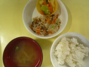 給食 2025-01-16 1月16日の給食 (給食) ・ミートスパゲティ ・ポテトサラダ ・ほうれん草とえのきのスープ (おやつ) ・コーンフレークおこし ・バ 続きを読むarrow_right 給食 2025-01-16 1月15日の給食(小正月) (給食) ・じゃこごはん ・しゅうまい風 ・中華風豆腐サラダ ・チンゲン菜スープ (おやつ) ・小豆蒸しパン ・みか 続きを読むarrow_right 給食 2025-01-16 1月14日の給食 (給食) ・ごはん ・鶏のマーマレード焼き ・小松菜のごま和え ・カレー人参 ・豆腐とわかめのみそ汁 (おやつ 続きを読むarrow_right 給食 2025-01-11 1月11日の給食 (給食) ・和風あんかけ丼 ・小松菜のおかか和え ・あげと豆腐のみそ汁 (おやつ) ・フライドポテト ・バナナ ・牛 続きを読むarrow_right 給食 2025-01-09 1月9日の給食(お正月あそび) 今日は「お正月あそび」をしたので、給食とおやつは お正月にちなんだものを用意しました! 写真は、ほし組用のおせち料理 続きを読むarrow_right 給食 2025-01-09 1月8日の給食 (ごはん) ・ごはん ・チャプチェ ・中華風サラダ ・チンゲン菜ともやしのスープ (おやつ) ・きなこトースト ・ 続きを読むarrow_right 給食 2025-01-07 1月7日の給食(七草がゆ) あけましておめでとうございます😌 今年もよろしくお願いいたします🎍 新しい一年を迎えましたね! みなさん「おせち料理 続きを読むarrow_right 給食 2025-01-06 1月6日の給食 (給食) ・中華丼 ・もやしナムル ・わかめと玉ねぎの中華スープ (おやつ)・甘辛小魚 ・塩せんべい ・バナナ ・牛 続きを読むarrow_right 給食 2025-01-04 1月4日の給食 (給食) ・カレーうどん ・千切り大根のお浸し (おやつ)・マシュマロサンド ・みかん ・牛乳 続きを読むarrow_right お知らせ 給食 2024-12-28 12月28日の給食 保育園は今日を持ちまして、2024年最後の1日が終了します 今年も残すところわずかですね みなさんにとってどんな一年 続きを読むarrow_right