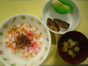 給食 2025-12-23 12月23日の給食 (給食) ・ごはん ・マーボー豆腐 ・きゅうりと人参ともやしのナムル ・チンゲン菜と玉ねぎのスープ (おやつ) ・焼 続きを読むarrow_right 給食 2025-12-22 12月22日の給食 (給食) ・ごはん ・焼ししゃも ・かぼちゃの煮つけ ・キャベツのごま酢和え ・しめじとねぎのみそ汁 (おやつ) ・ 続きを読むarrow_right 給食 2025-12-20 12月20日の給食 (給食) ・和風スパゲティ ・納豆サラダ ・玉ねぎとわかめのすまし汁 (おやつ) ・黒糖蒸しパン ・バナナ ・牛乳 続きを読むarrow_right 給食 2025-12-19 12月19日の給食 (給食) ・ごはん ・鶏の柚子焼き ・卯の花炒り煮 ・小松菜のおかか和え ・えのきとねぎのみそ汁 (おやつ) ・きつ 続きを読むarrow_right 給食 2025-12-18 12月18日の給食 (給食) ・ごはん ・すき焼き風煮 ・トマト ・もやしとニラのみそ汁 (おやつ) ・ホットケーキ ・バナナ ・牛乳 続きを読むarrow_right お知らせ 給食 2025-12-17 12月17日の給食 (給食) ・蒸し寿司 ・あじの竜田揚げ ・りんご ・豆腐とねぎのすまし汁 (おやつ)・ドーナツ ・みかん ・牛乳 続きを読むarrow_right 給食 2025-12-16 12月16日の給食 (給食) ・ごはん ・酢豚 ・焼きれんこん ・チンゲン菜と豆腐のスープ (おやつ) ・いちごジャムパン ・バナナ ・ 続きを読むarrow_right 給食 2025-12-15 12月15日の給食 (給食) ・ごはん ・鮭のちゃんちゃん焼き ・高野豆腐の煮物 ・ブロッコリーのごま和え ・ほうれん草と大根の 続きを読むarrow_right 給食 2025-12-13 12月13日の給食 (給食) ・親子丼 ・白菜のお浸し ・あげとわかめのみそ汁 (おやつ)・スパイシーポテト ・みかん ・牛乳 続きを読むarrow_right 給食 2025-12-12 12月12日の給食 (給食) ・ごはん ・さわらの塩焼き ・ひじき煮つけ ・カレー人参 ・大根としめじのすまし汁 (おやつ) ・チーズ 続きを読むarrow_right