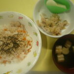 給食 2025-09-30 9月30日の給食 (給食) ・ごはん ・酢豚 ・ブロッコリー ・冬瓜スープ (おやつ) ・ピザトースト ・オレンジ ・牛乳 続きを読むarrow_right 給食 2025-09-29 9月29日の給食 (給食) ・ごはん ・さばのカレー焼き ・かぼちゃ煮付け ・ほうれん草のおかか和え ・ねぎと豆腐のみそ汁 (おやつ) 続きを読むarrow_right 給食 2025-09-27 9月27日の給食 (給食) ・卵入りチキンライス ・チーズサラダ ・オニオンスープ (おやつ)・ぶどうゼリー ・オレンジ ・牛乳 続きを読むarrow_right 給食 2025-09-26 9月26日の給食 (給食) ・ごはん ・さわらの煮つけ ・冷奴 ・ごぼうのきんぴら ・じゃがいもとわかめのみそ汁 (おやつ) ・チヂミ 続きを読むarrow_right 給食 2025-09-25 9月25日の給食 (給食) ・塩ラーメン ・きゅうりと人参ともやしのナムル (おやつ) ・イチゴジャムパン ・バナナ ・牛乳 続きを読むarrow_right 給食 2025-09-24 9月24日の給食 (給食) ・鶏そぼろちらし寿司 ・冷しゃぶのポン酢和え ・梨 ・麩とわかめのすまし汁 (おやつ) ・フルーツポンチ 続きを読むarrow_right 給食 2025-09-22 9月22日の給食 (給食) ・カレーライス ・キャベツごまサラダ (おやつ) ・ヨーグルト ・バナナ ・牛乳 続きを読むarrow_right 給食 2025-09-20 9月20日の給食 (給食) ・冷やしうどん ・なっとうサラダ (おやつ)・スパイシーポテト ・バナナ ・牛乳 続きを読むarrow_right 給食 2025-09-19 9月19日の給食 (給食) ・ごはん ・手作りしゅうまい ・春雨サラダ ・ブロッコリーのごま和え ・かいせん風スープ (おやつ) ・お 続きを読むarrow_right 給食 2025-09-18 9月18日の給食 (給食) ・ロールパン ・タンドリーチキン ・ポテトサラダ ・ピーマンのマリネ ・トマトスープ ・牛乳 (おやつ) 続きを読むarrow_right